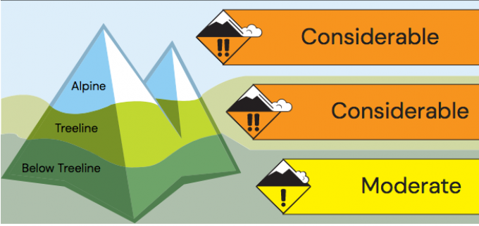 Avalanche conditions are rated as “considerable” at the treeline for the next three days, and also remain considerable into the alpine in the region this Friday, easing to moderate on Saturday, but back into considerable again on Sunday.