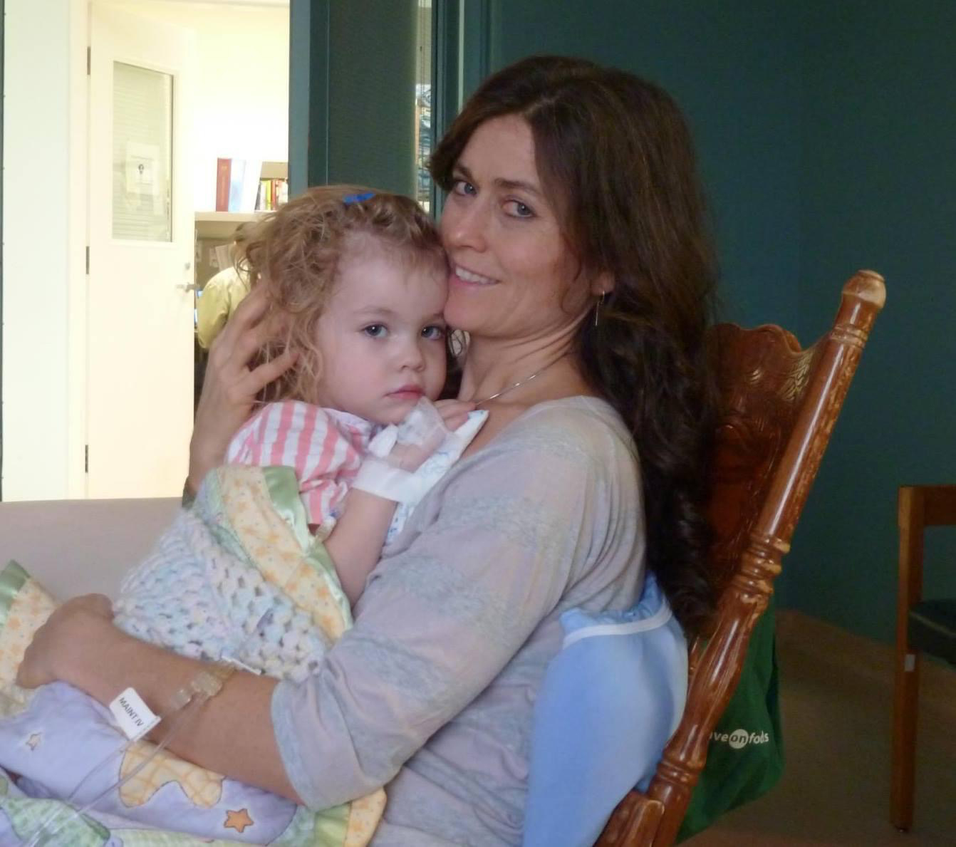 Andrea Purcell holds three-year-old daughter Paige following her brain surgery.
