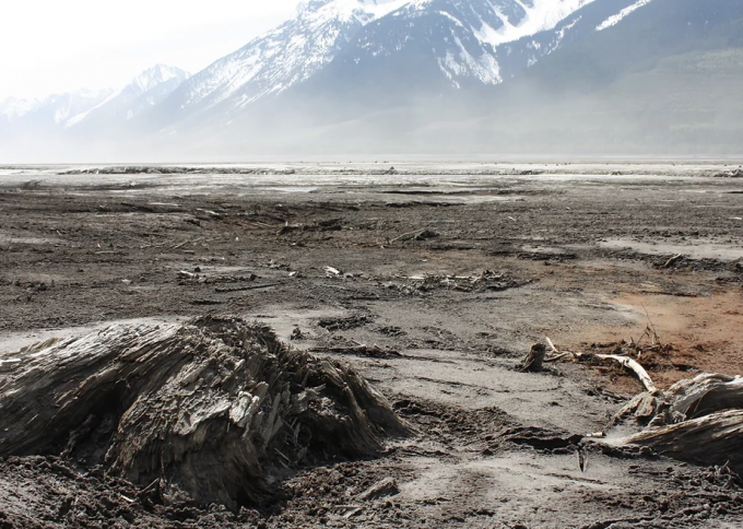 Kinbasket Reservoir in spring drawdown — Columbia River Treaty Local Governments Committee website.