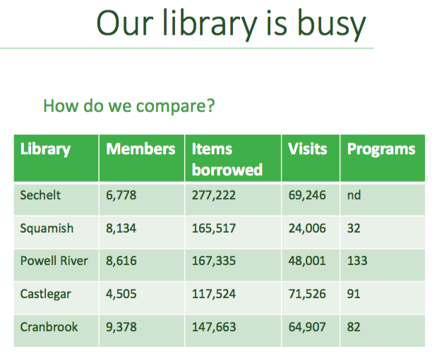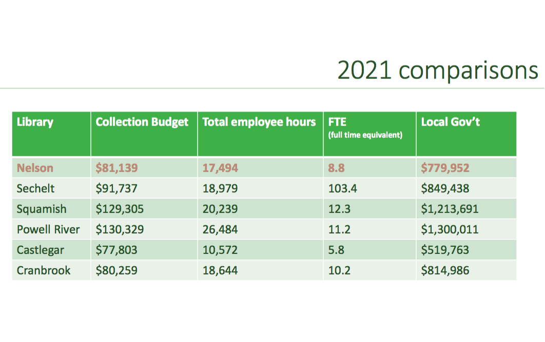 The library is also asking for an increase from the RDCK, calling for a five per cent jump ($8,515) to $178,821.