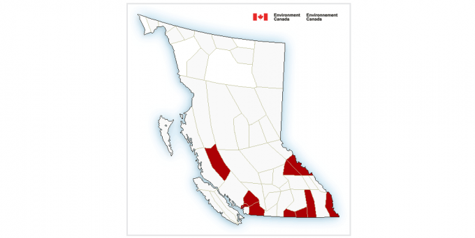 Environment Canada issued the alert Thursday morning for Highway 3, Paulson Summit to Kootenay Pass.