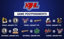The KIJHL has postponed no less than seven weekend games, including Saturday’s 7 p.m. tilt at the NDCC Arena between the Nelson Leafs and Castlegar Rebels.